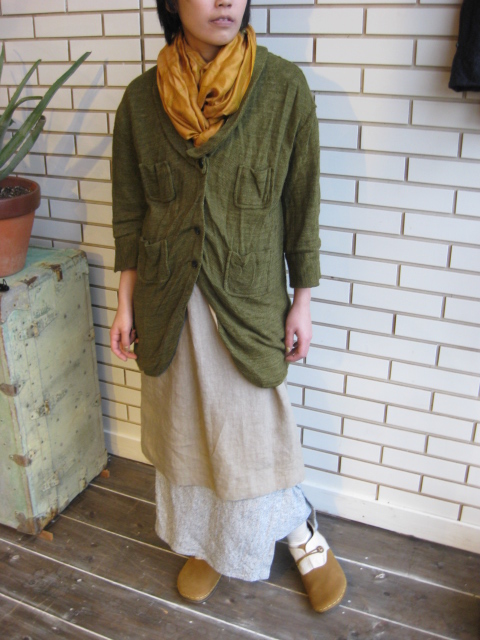 を生じさせ、リネンニットの風合いを生かしている。