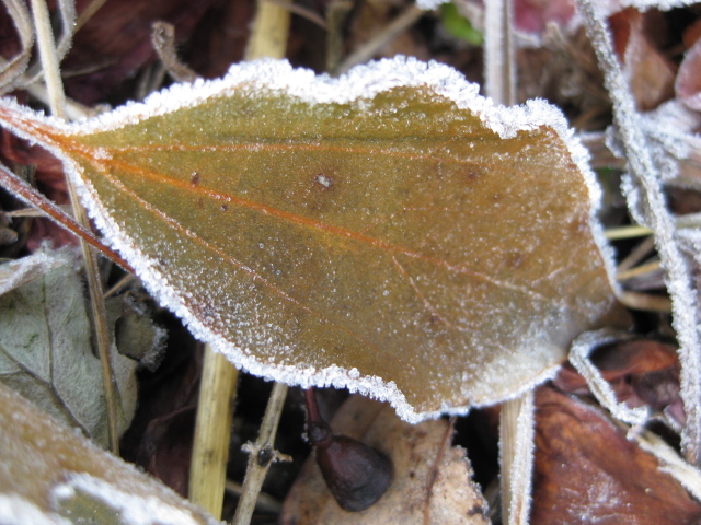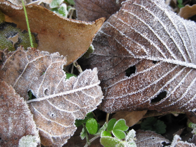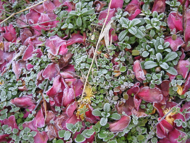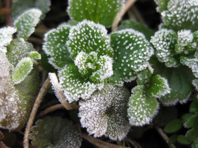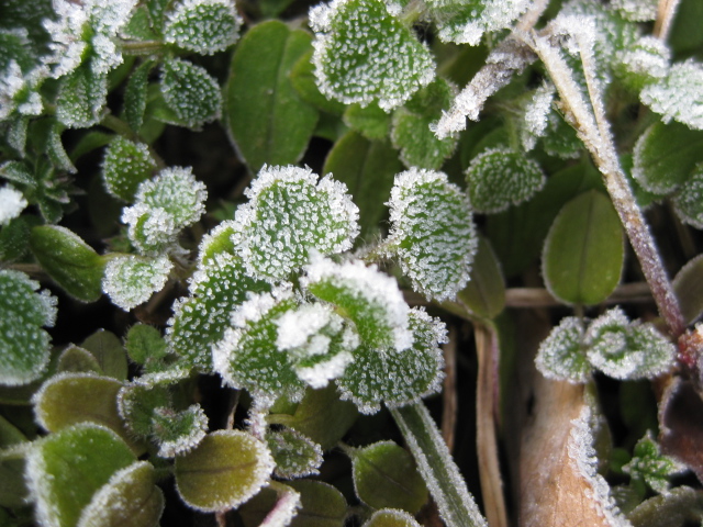 に霜が降りて少し凍っている。
