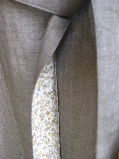 襟裏、ポケット裏、ベルト裏にはリバティプリントの生地