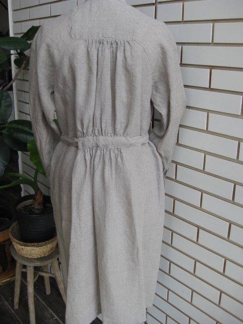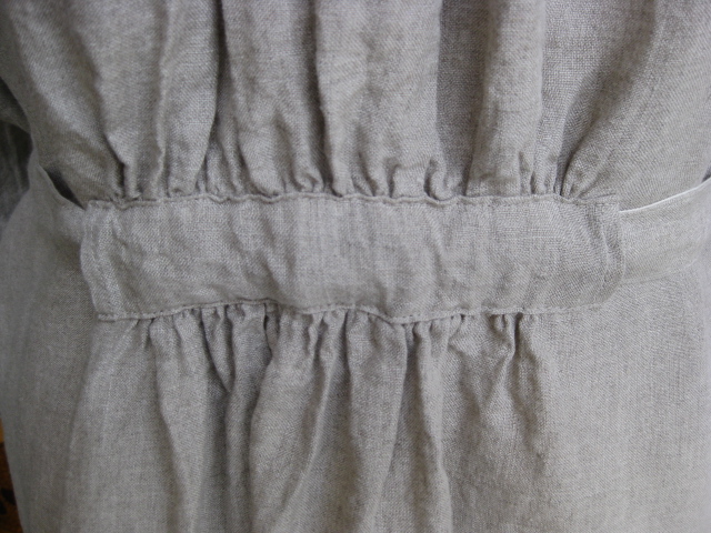 生かしていたり、麻の素材感を生かして後ろにギャザーを使ったり、