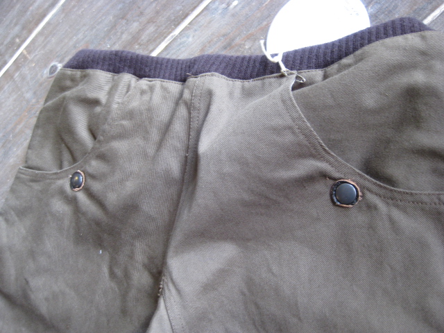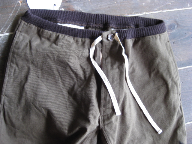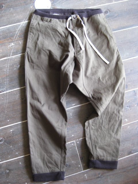 ゴワッとした素材で役目のゆるいリブが裾についているのが
