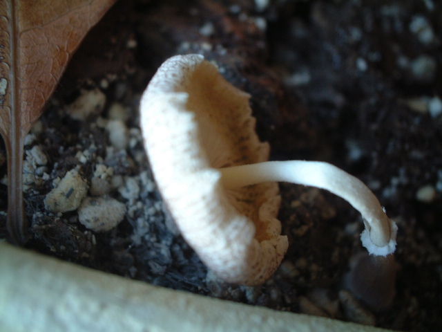 店のパキラの土になにやらサイケデリックなものが生えました。