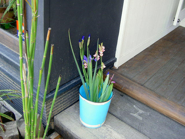 来てくれたお花がバケツに入っていたりする。