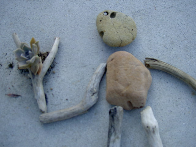 この間拾って来た穴あき人面石と流木をいじって遊ぶ。