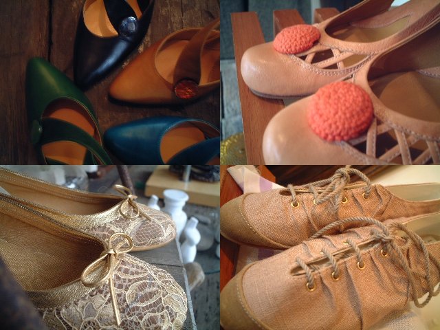 バレーシューズは総レース、ヒールものはかわいいボタン付き。