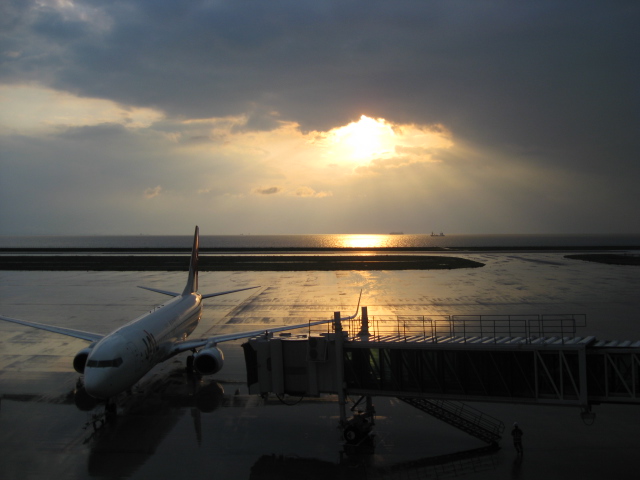 またしても空いているであろうと思われるJALで、天気は小雨ぐらい