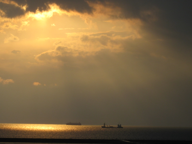 な感じでしたけど、雲間から朝日が差し込んでました。