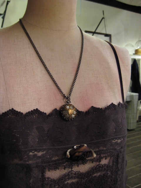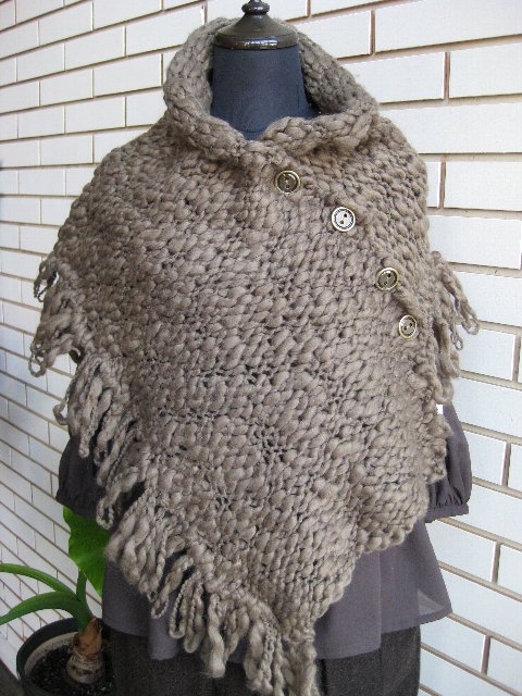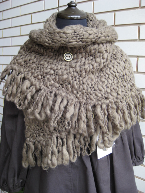 ボワッとした糸の素材に真鍮のボタン。